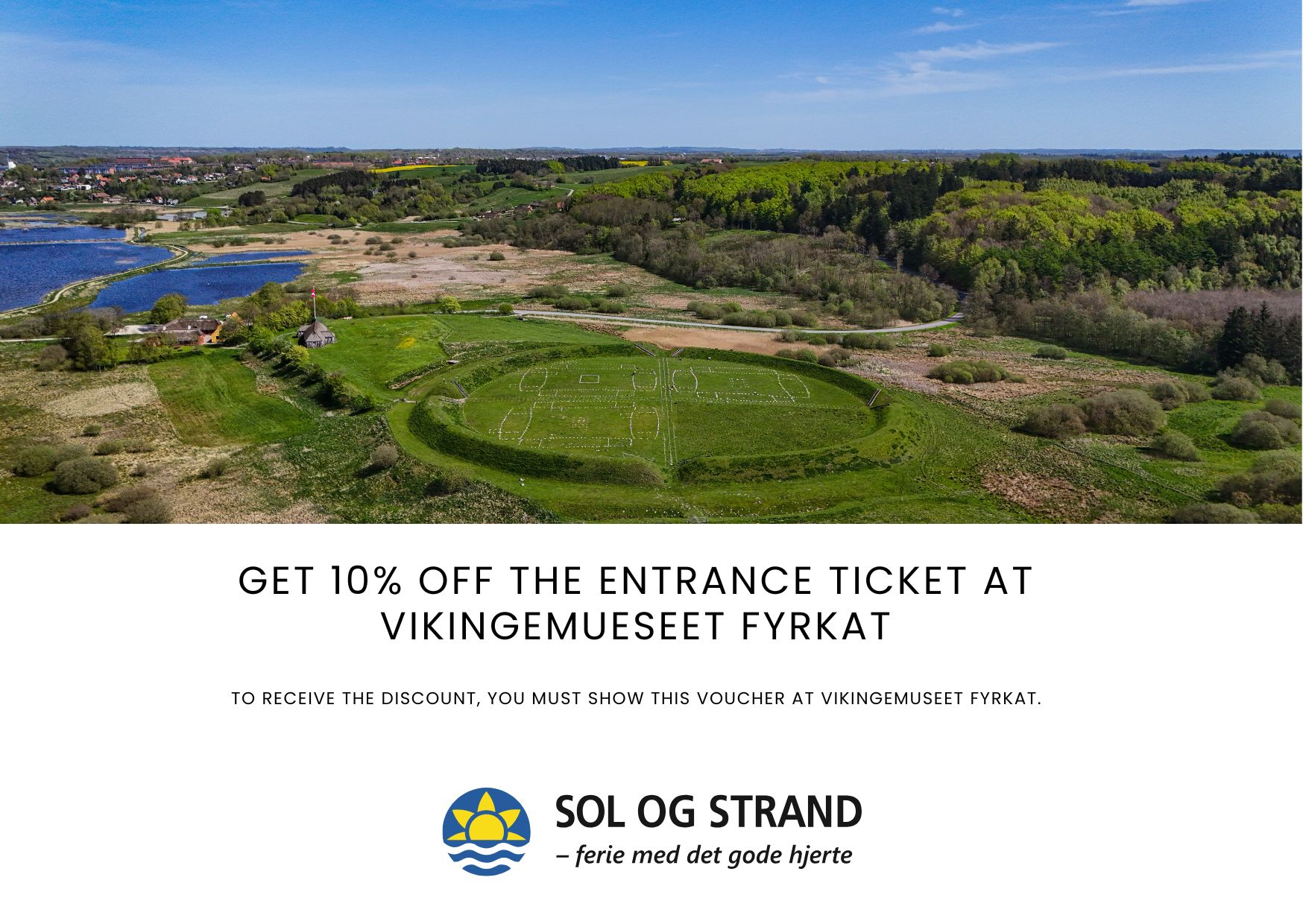 Als Feriengast bei Sol og Strand erhalten Sie 10 % Rabatt auf den Eintritt in das Wikingermuseum Fyrkat. Bringen Sie diesen Gutschein mit und zeigen Sie ihn am Eingang vor, um den Rabatt zu erhalten.
